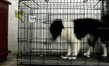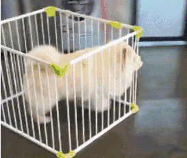 關籠子看著有點心疼,還是給它一些活動空間吧!據說有種寵物圍欄蠻好的,狗狗也不會像在籠子裡那麼壓抑。是的,效果很好,你看,狗狗絕對是在圍欄中活動的~