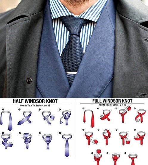 16.不要嘗試溫莎結之外的領帶係法,根據自己的臉型來決定用半溫莎結還是全溫莎結(溫莎結怎麼扣,下面有小圖,自己保存吧~)。如果你不知道自己的臉是大還是小,問問男性朋友們,他們的評價會更客觀。