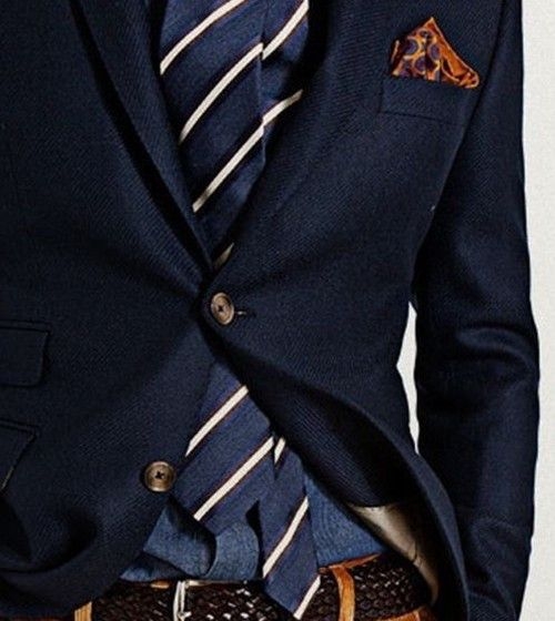 3.除了領帶,抖騷的還有方巾。胸前口袋裡塞一條方巾可以讓你看上去更優雅,但要記住,方巾的材質和圖案千萬不能與領帶一樣。在你退化成一個老古董之前,記住方巾是穿西裝時自由度最高、最能顯示個性的地方。