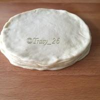 3 將5份麵糰都擀成直徑20cm的面片