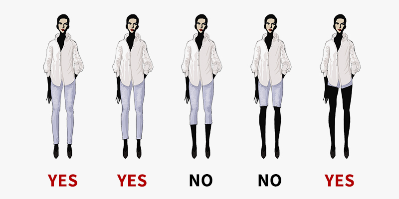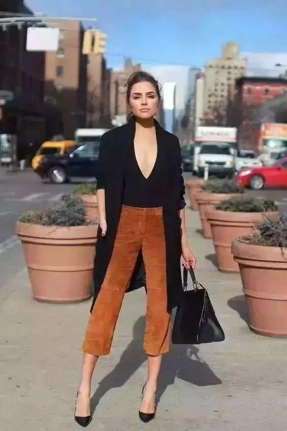 褲子河裙子同理,5分褲和7分褲會把腿部從視覺上分割成兩部分,不僅沒有達到拉高身材的效果,還容易讓小腿顯粗。