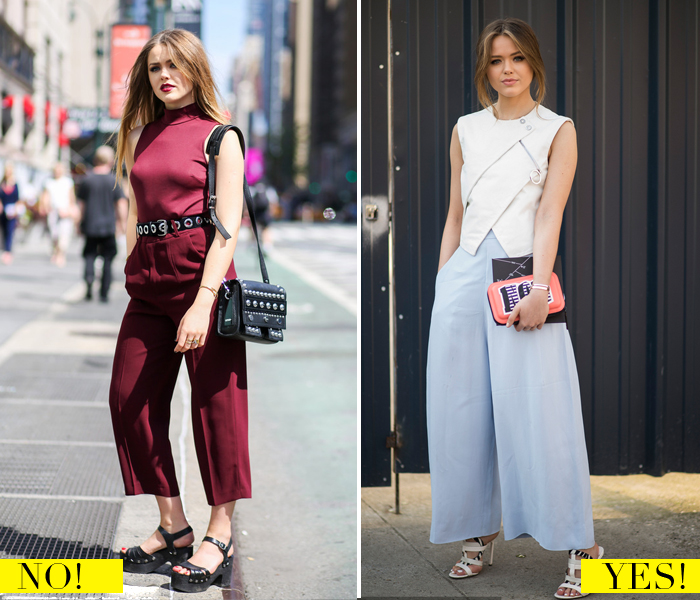 我們都知道選擇過長的闊腿褲,再在裡面搭配一雙恨天高,高十幾公分不是夢!但是!像上圖右邊這種褲長不夠長就算了,褲管還縮水的款式就千萬不要嘗試!