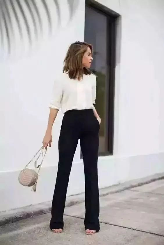 *****5.闊腿褲流行不是沒道理*****闊腿褲為什麼這麼流行?!因為顯瘦顯高呀,寬闊的褲腿不僅把肥胖的大腿掩蓋,還讓腰身顯得更纖細,所以多嘗試闊腿褲吧,搭配稍短上衣效果更佳!