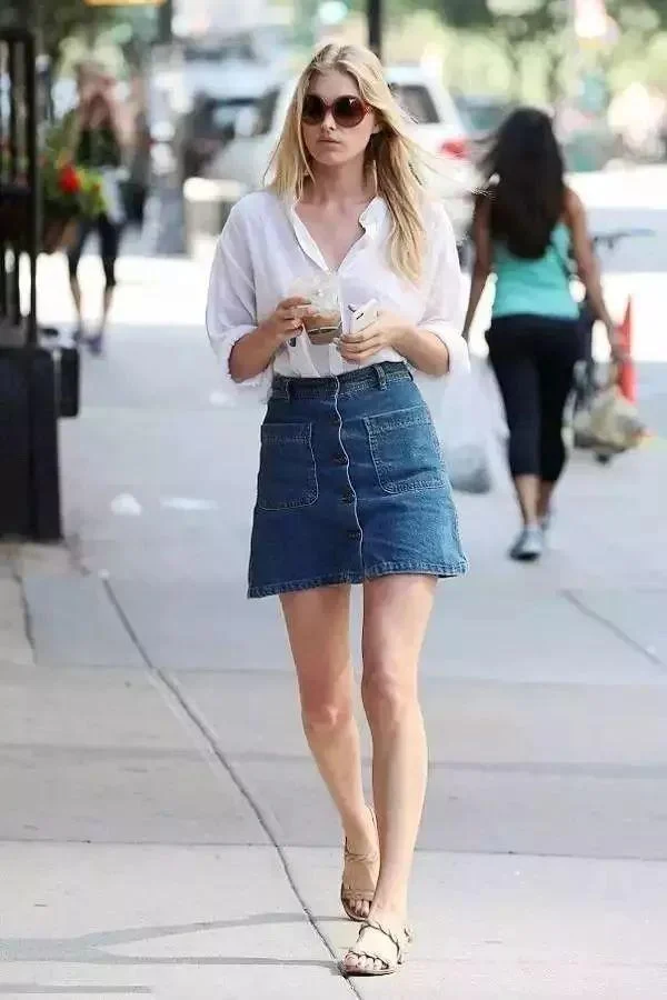 超短裙+高跟鞋,大面積裸露的腿部皮膚,可以很好的拉長腿部比例,讓你顯高一絕。