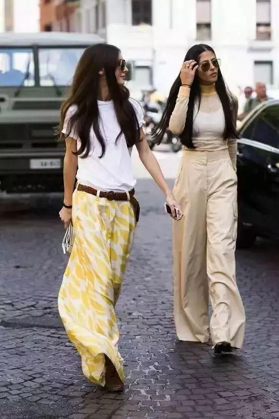 沒有對比就沒有傷害,上圖中雖然兩人都穿著闊腿褲,但是腰線的不同材質不同,上衣不同,穿出來的差距也很大!