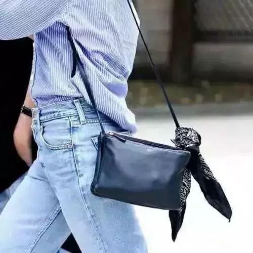 包包並不算亮點,很普通,但是搭配一條絲巾瞬間提升俏麗感。