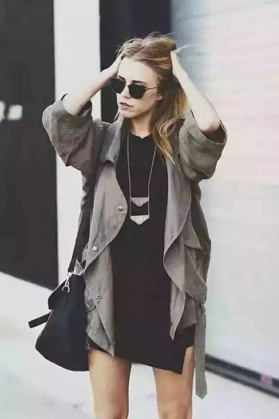 墨綠色外套,黑色內搭,整體的比較暗沉,搭一條閃亮別致的項鍊,立馬就不一樣 !