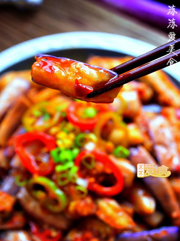 11、倒入炸好的茄子翻炒幾下,加入魚香醬汁,略收汁出鍋即可。(時間不可過長)