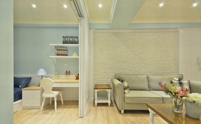空間以粉嫩的淺藍色搭配米白色作為空間基調,營造清新明亮的視覺感受,化解小空間容易產生的壓迫感。