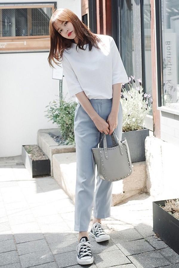 或者【白T恤、闊腿褲、球鞋】