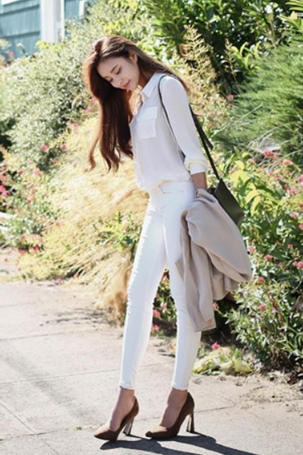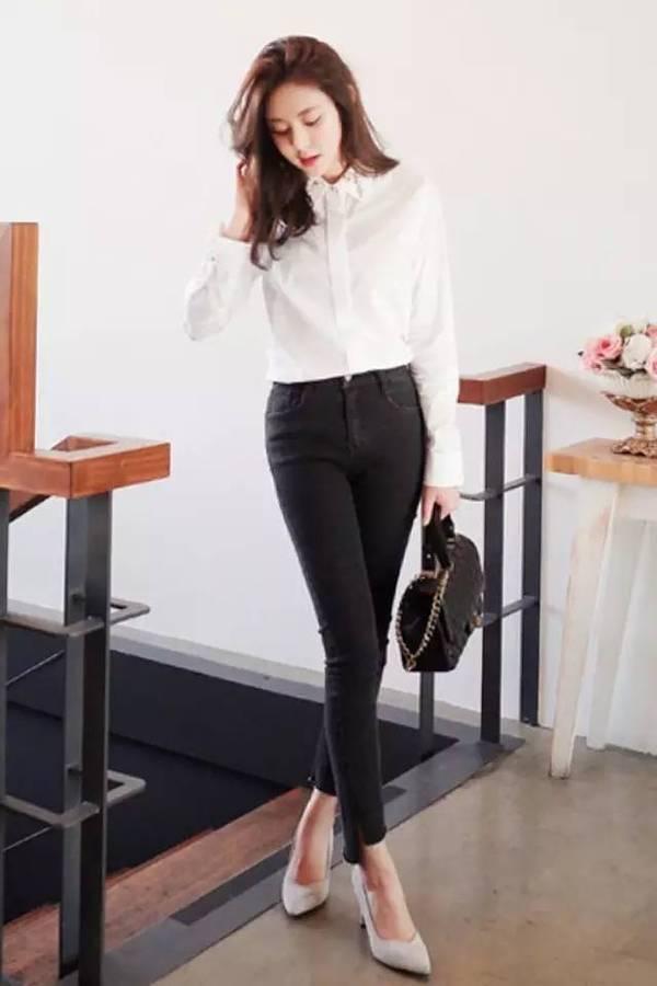 或者是【白T恤、半身裙、高跟鞋】