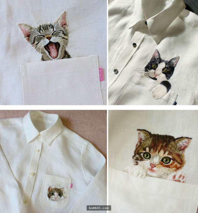 ▼Hiroko Kubota襯衫上的立體貓咪刺繡,藏在口袋中的貓咪很可愛。