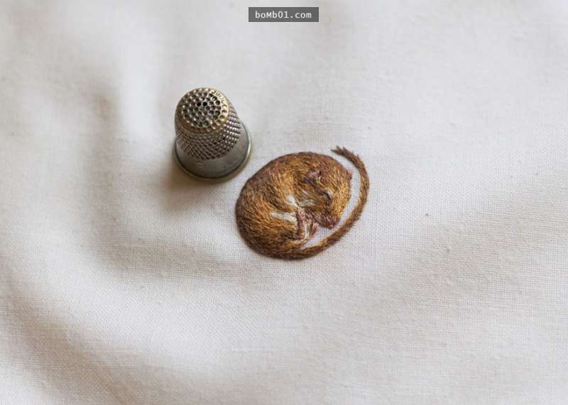 ▼Claire Moynihan的刺繡小動物,雖然微小,但很精巧。