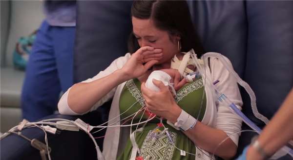 4天後,媽媽琳賽中終於有機會抱到兒子,她感到非常開心,