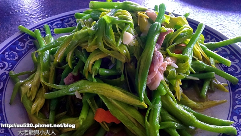金針花,來到山產店當然也要吃吃平日較不常吃到的菜,金針花上來,很軟嫩,大家讚不絕口,