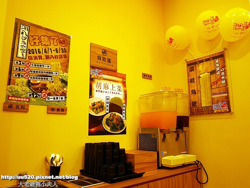 自助區:有筷子、湯匙、杯子,冷飲有無糖紅茶和百香果汁, 超愛百香果汁的,好喝~~~