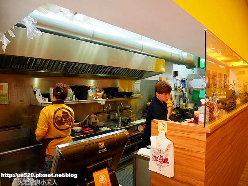一走進店內,鵝黃色的裝潢讓人充滿了食慾, 左邊是櫃台和開放式廚房,透明的玻璃讓我們清楚看到食材製作過程