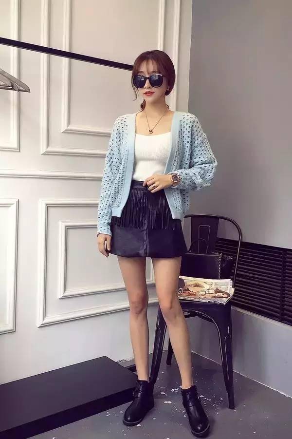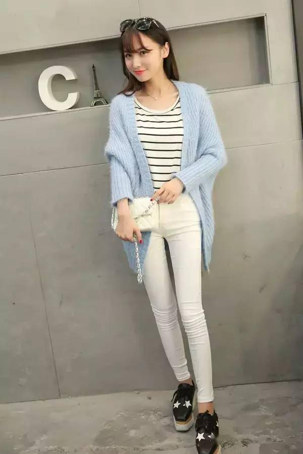 身高條件夠的妹子完全可以選擇有長款針織開衫,非常顯瘦又有範兒,