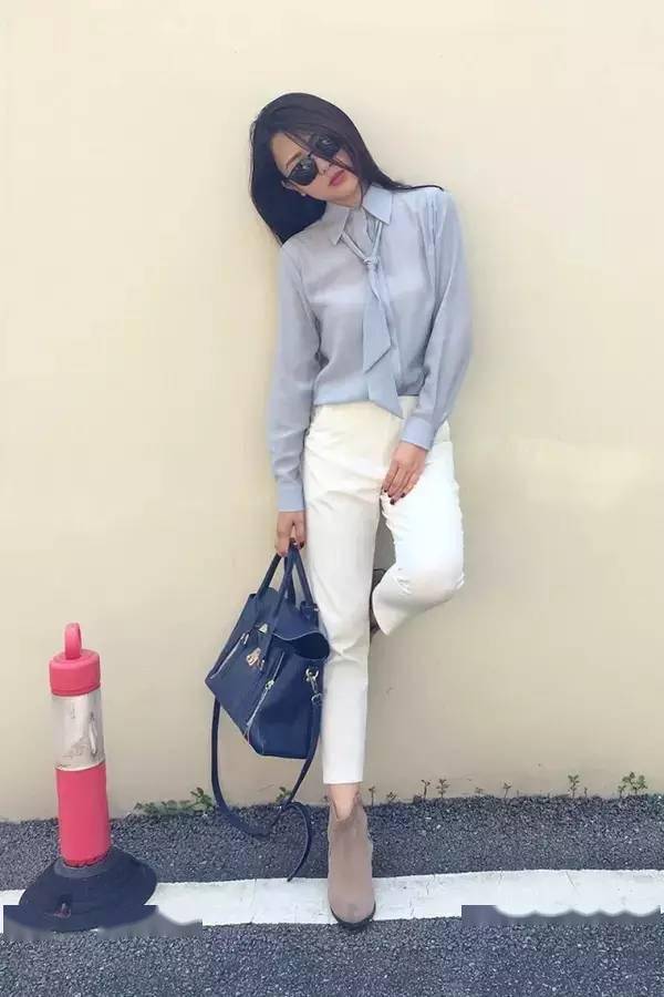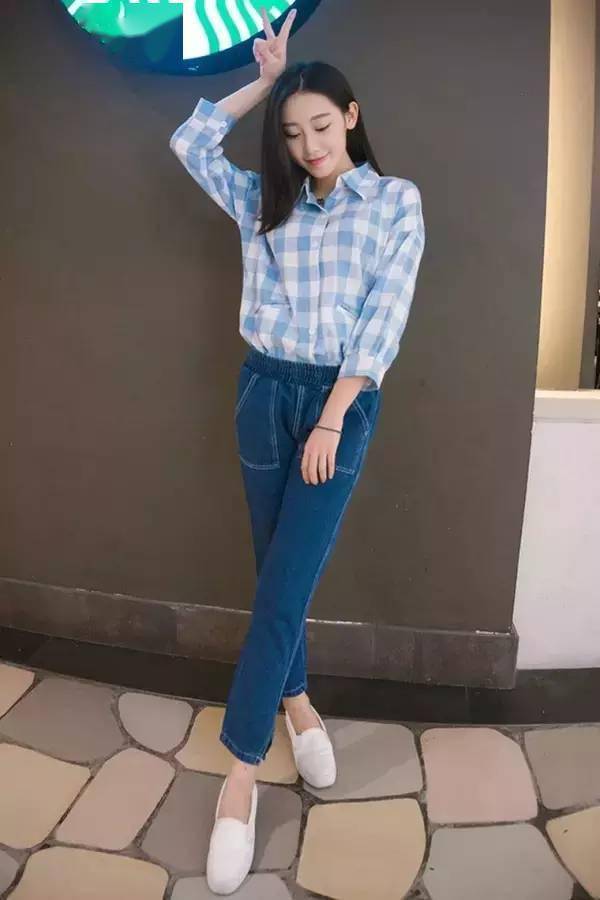 當牛仔藍和嬰兒藍相遇,時尚就和清新有了新的結合體,選擇中高腰的款式將襯衫扎進腰間,幹練又青春,非常起範兒!