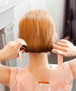 固定馬尾辮的時候,將皮筋一層一層交叉捆綁,最後一股頭髮,不要將馬尾拉出。