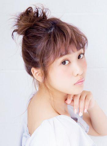 校園女生扎什麼樣的髮型比較合適?空氣劉海丸子頭髮型扎發設計,劉海有些虛化,向後梳的頭髮中,極度蓬鬆的梳髮帶來少女朝氣的同時,也將自由散漫的氣息濃郁散發。