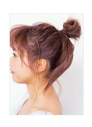 劉海是稀薄的款式,丸子頭髮髻也有些凌亂效果,校園女生扎發,具體的環節細節不同,扎出來的效果也會不完全一樣,梳這款髮型也可以是頗為順滑的。