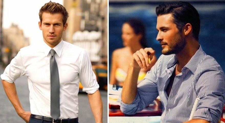 襯衫是男士們衣櫥的必備,出席正式的場合少不了襯衫。究竟什麼樣的穿法才能讓襯衫更具男人味呢?本文會告訴你,長袖襯衫捲起袖子的穿法,可以讓男士更加彰顯成熟紳士優雅的氣質哦。純白色襯衫搭配灰色領帶,出席完正式場合可以捲起袖子,瞬間又是另一種味道,參加宴會或Party增添了很多的親和力呢。細條紋襯衫比起純色襯衫又多了幾分親和力和輕熟的味道,鬆開頸部或上面一兩顆釦子,然後手臂上袖子再往上捲,這樣很快速地就完成一個輕鬆休閒樣子。