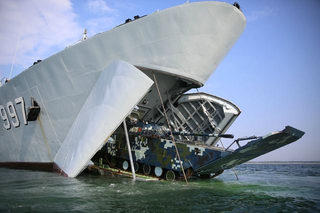 在演習中,中國海軍陸戰隊的05式兩棲戰車和071型船塢登陸艦讓俄羅斯軍方十分羨慕,前者在前兩屆俄羅斯舉辦的國際軍事大賽中大放異彩,無論是水上速度還是火力都完胜俄羅斯BTR-80戰車,後者更是俄軍夢寐以求的兩棲艦艇,目前俄海軍的主力登陸艦還是蘇聯在1960年代研製的蟾蜍級坦克登陸艦,噸位僅有4000噸,最多可攜帶10輛坦克和190名士兵,而071型登陸艦排水量高達18500噸,可運輸50輛作戰車輛和一個加強營的陸戰隊,此外還能攜帶4艘國產LCAC高速氣墊船和4架直升機,具備較強的兩棲作戰能力。
