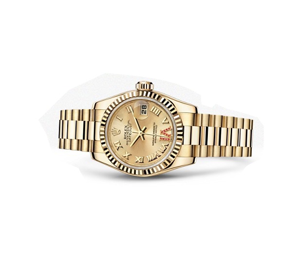 自1957年起,女裝日誌型腕錶便成為女士專屬的經典勞力士。耀眼迷人的黃金與標誌的日曆窗,以及六點鐘鑲鑽的羅馬數字標識,每一個細節都散發著女士腕錶的迷人之處。既典雅又不乏時髦感。
