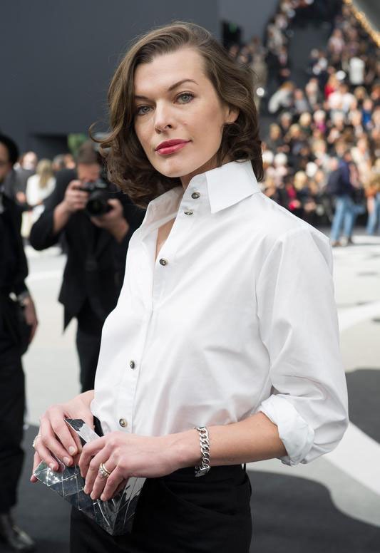 Milla Jovovich身穿白襯衫與闊腿褲搭配,演繹出經典的中性風格,腕間搭配一款精鋼材質鏈條表,更是完美呈現出鏈條表與時裝搭配的時髦感。