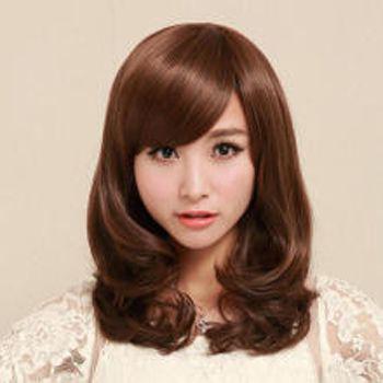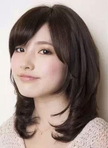 胖女生斜劉海內扣燙髮髮型黑色的頭髮從兩邊往中間梳,發尾有些虛虛的,細碎內扣燙髮髮型,斜劉海梳過額頭的時候,有些外蓬鬆,將發尾扣下來的感覺,讓髮型保持了立體,對臉型的修飾就自然而然了。
