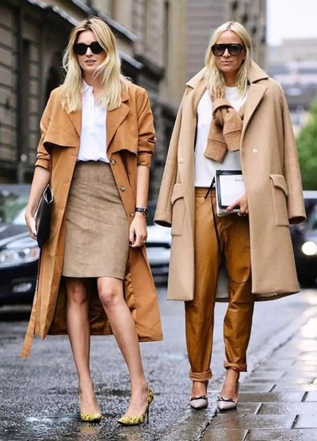 由於駝色的那麼多優點,許多女孩都喜歡用深淺不同的駝色單品相互搭配,有一種和諧統一的美感,在街頭的回頭率一定很高。