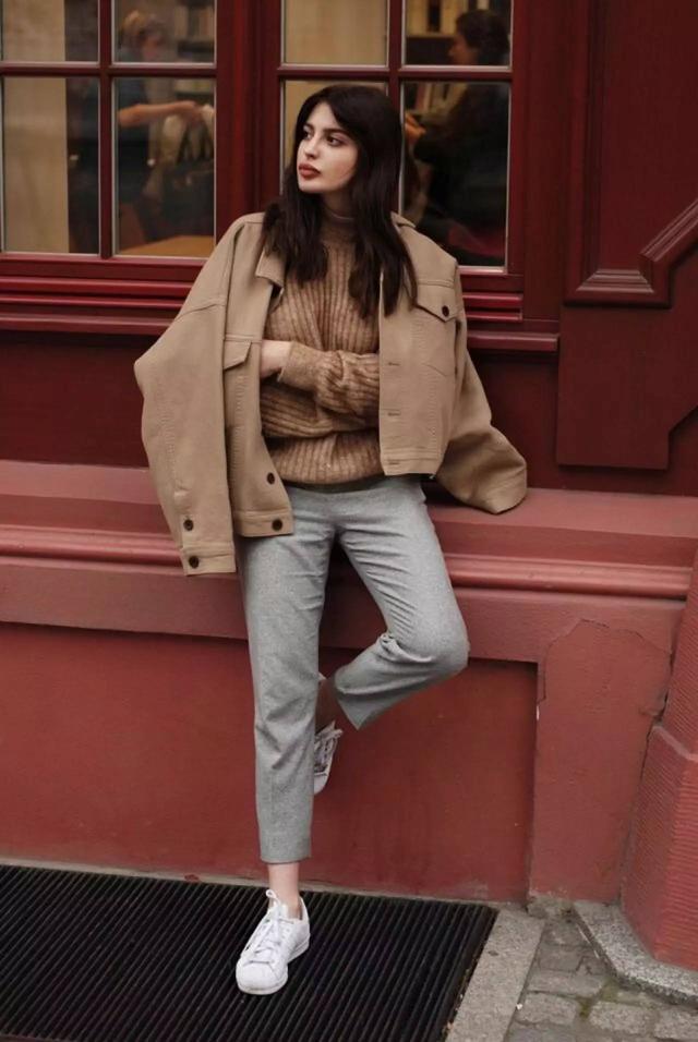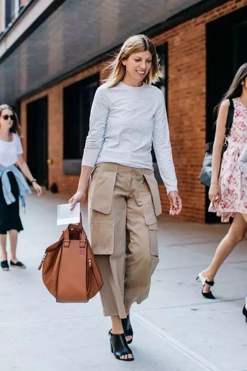 一條有設計感的駝色褲子也是值得入手的選擇,不僅與臉部分隔開來,也易於搭配。如果你剛開始嘗試駝色,可以這樣開始,當然這麼穿的時候,上衣可以塞進褲子裡。