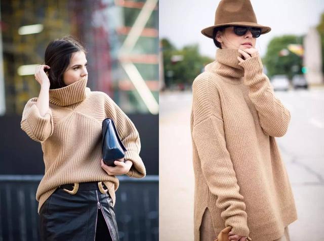 從指間溫暖到脖頸的高領oversized的駝色毛衣更是不能錯過,像是從男友衣櫃偷來的衣服,穿上身有點嬌嫩的小女人味,很能激發男友保護欲呢。