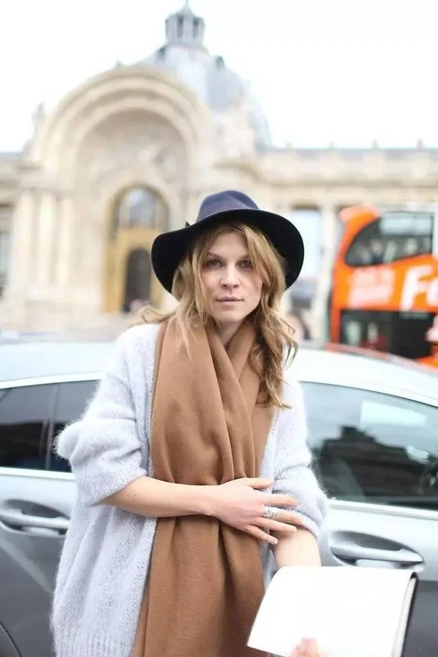 Laura Matuszczyk直接把圍巾搭在肩上,散漫的風味呼之欲出,再加上小雜亂的睡不醒頭,滿滿地法式慵懶風情。