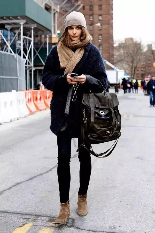 深色大衣+駝色圍巾,整體更加軟綿,感覺像是在呼吸,而不是悶到不想再看第二眼。