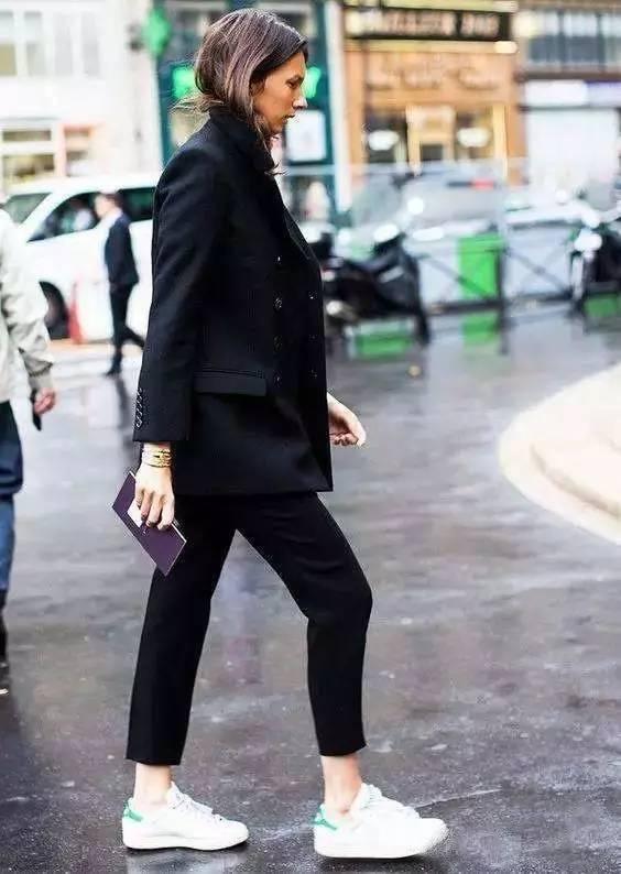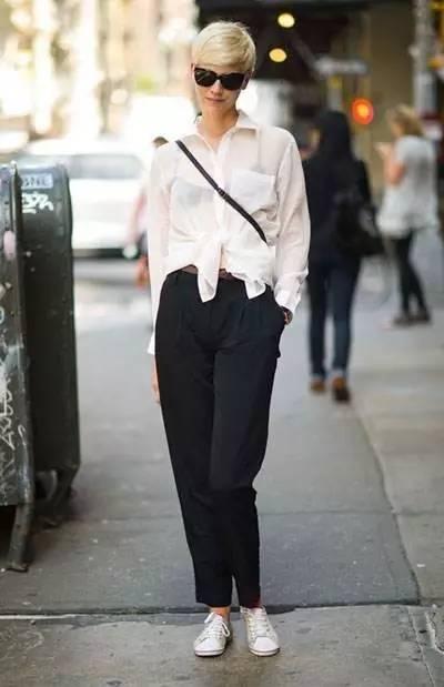 如果你實在不喜歡穿高跟鞋,運動鞋或是平底鞋搭配西褲也同樣好看。只不過是將高跟鞋的性感幹練改變為帥氣幹練,但是好看程度不相上下。