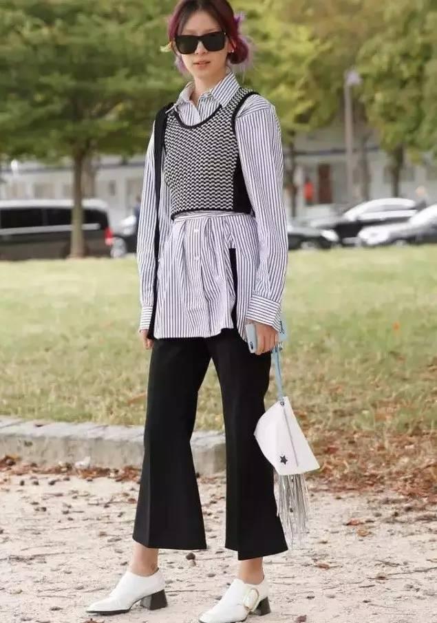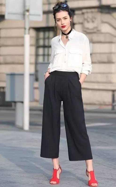 西褲加高跟鞋就像數學公式中的固定搭配一樣。這樣穿搭配保險不會出錯,氣質也是滿滿。經常穿平底鞋的你可以嘗試一下,體驗不同的風格。