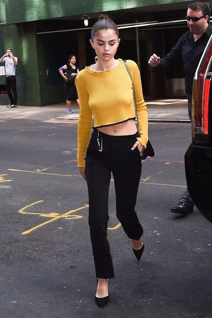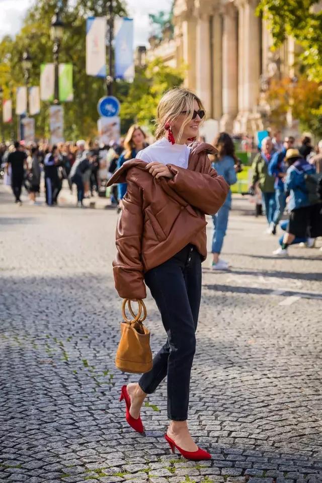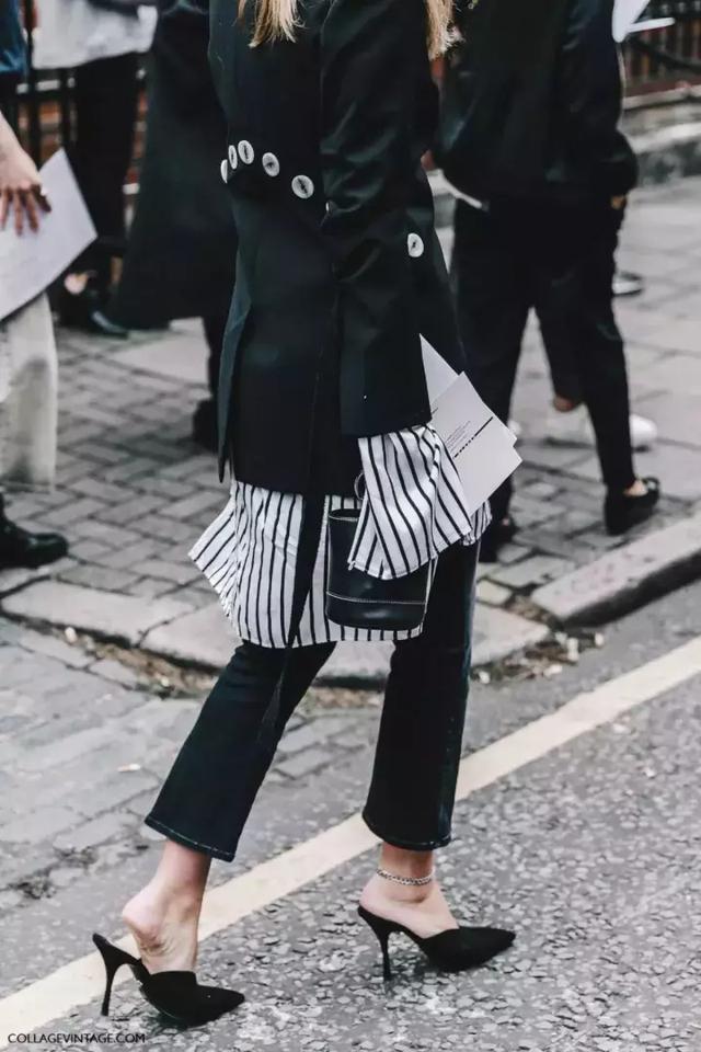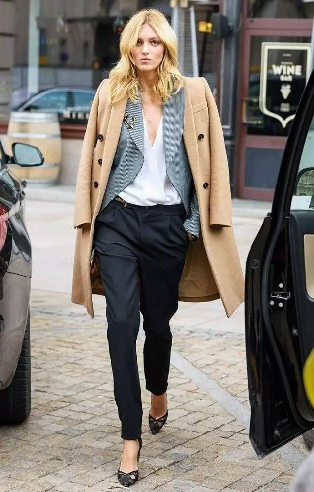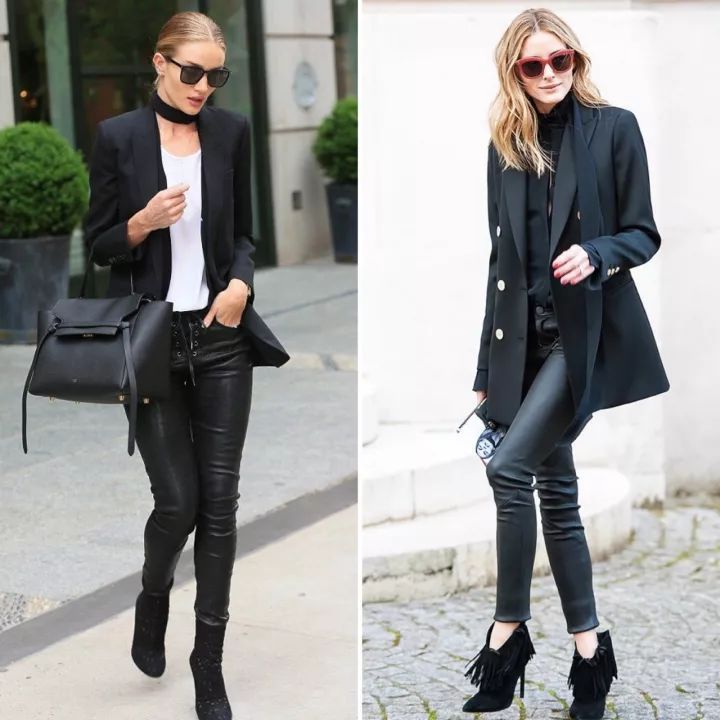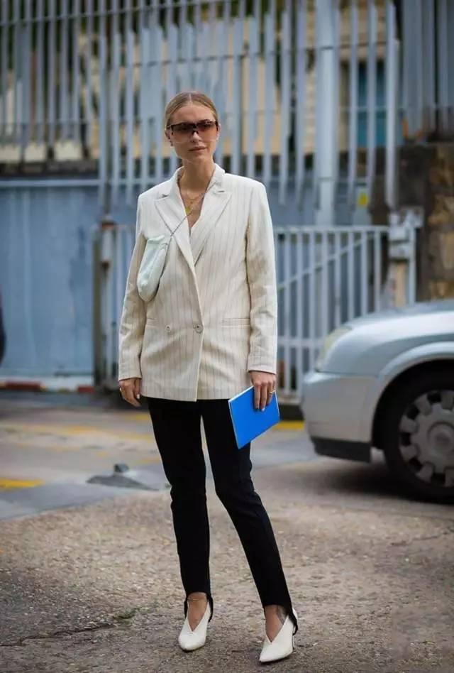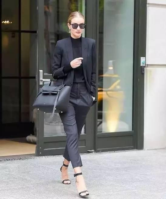 黑褲子這種百搭單品,往往容易被人們忽視,有品味的穿搭和草率的穿著只有一線之差。一雙露腳面的高跟鞋或是一個亮色的外套都可以為整體搭配加分。