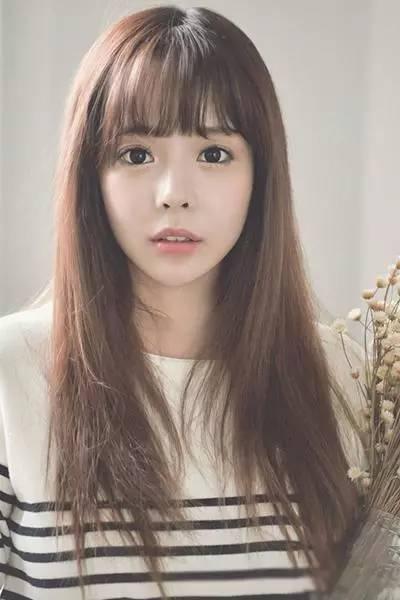 長臉女生的一頭中長發剪成了齊劉海直發髮型,是那麼的柔順服帖,就不要破壞這份美感了,