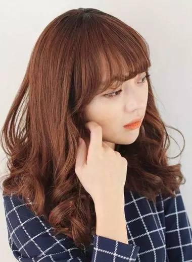 這款就是標準的韓式女生中長發梨花頭髮型啦,用活潑的棕紅色突顯紅潤肌膚,