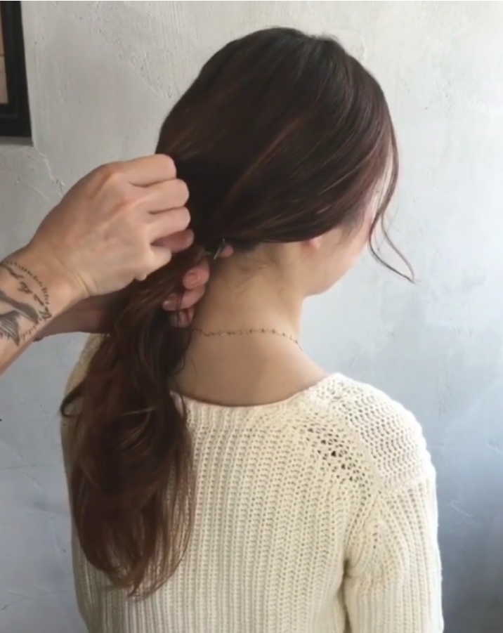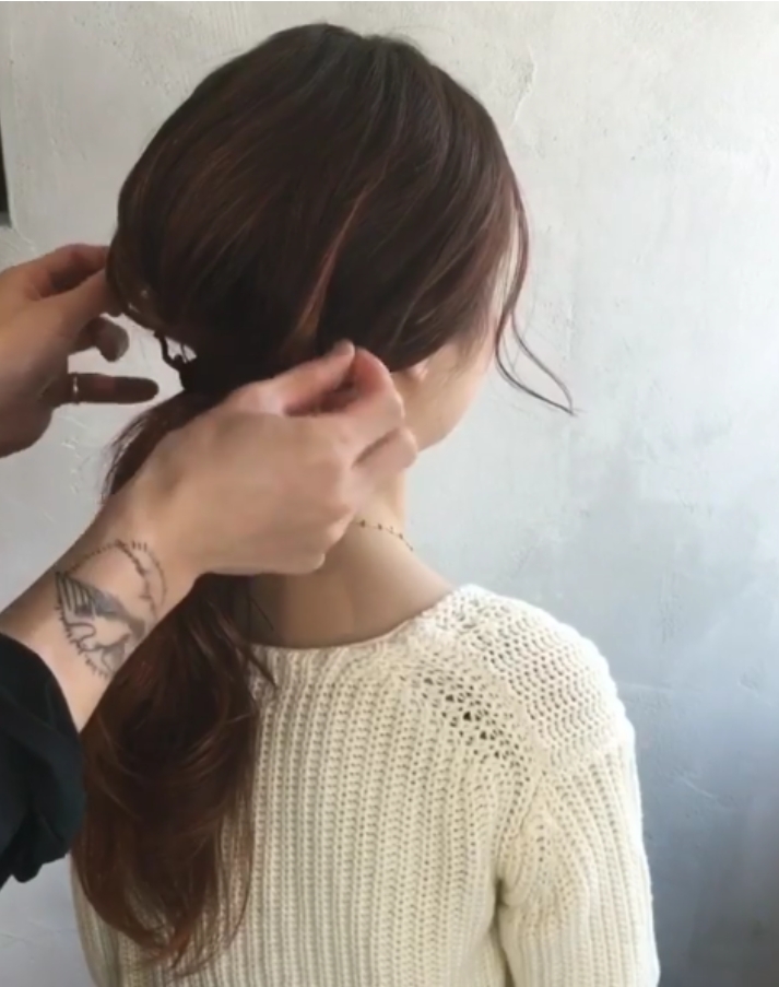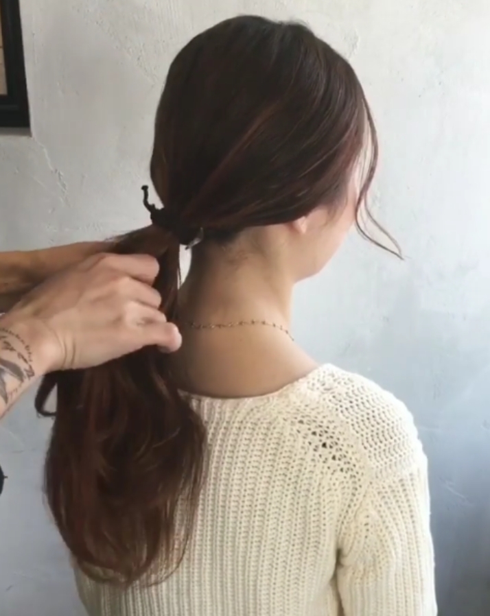 低馬尾的做法也是一樣喔,重點就是要拉鬆!束好馬尾輕輕拉緊~