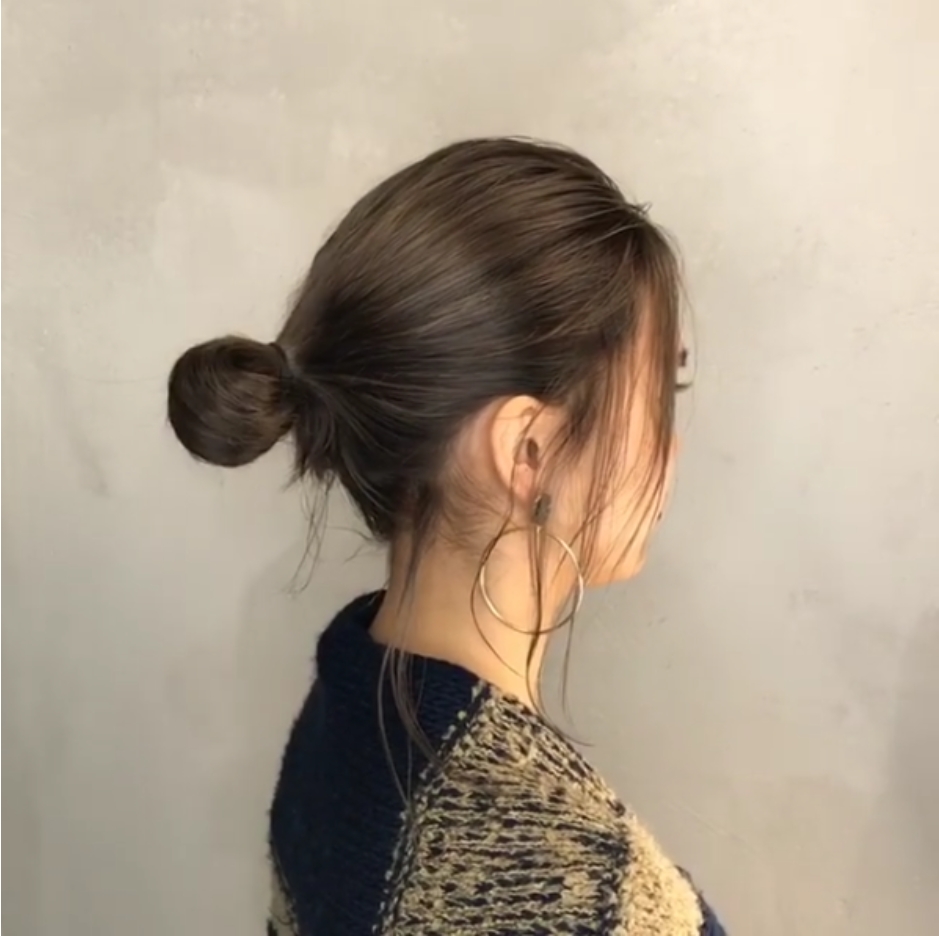 現在先看看束丸子頭的技巧!第一步看起來與一般的丸子頭無異~