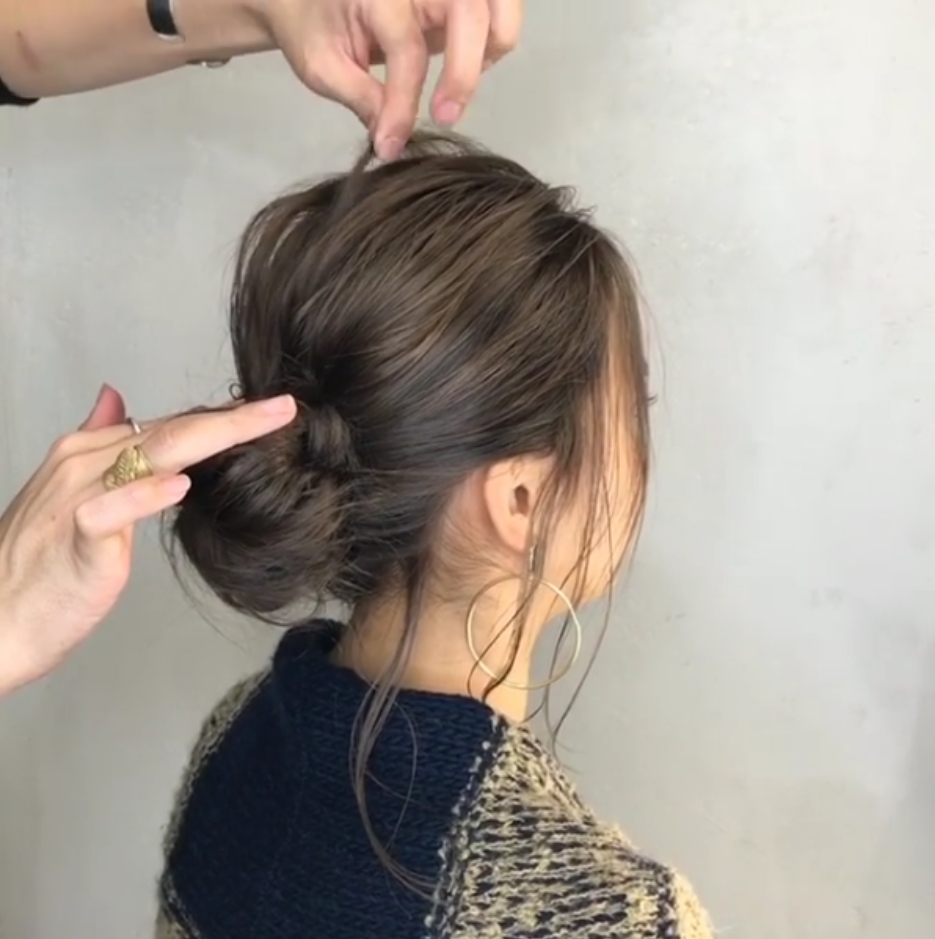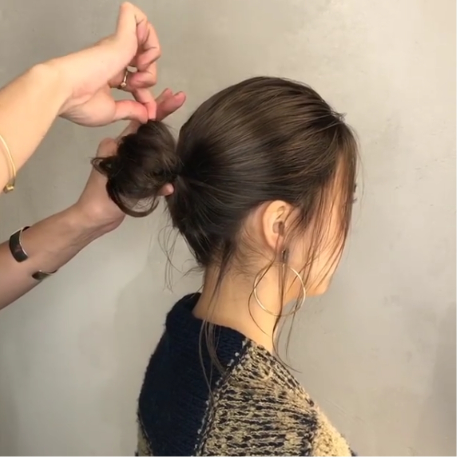 就像發型師一樣,先拉起小束的頭發,真的很~隨意地一小束一小束地拉起,就能營造松松的慵懶感了!