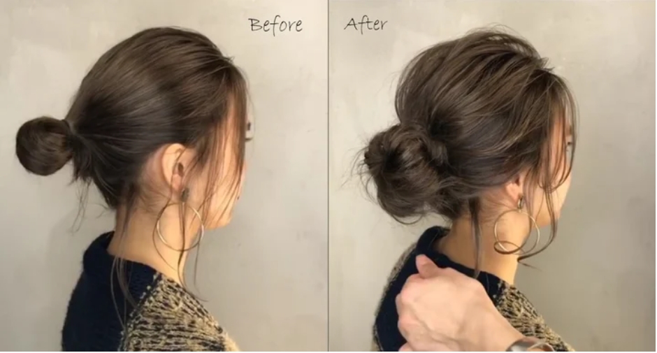 除了丸子,後腦袋的和頭頂的頭發也要記得拉松!就隨意地拉起一點就好,即使有點散亂也不要緊,因為這才是慵懶風的要點啊!