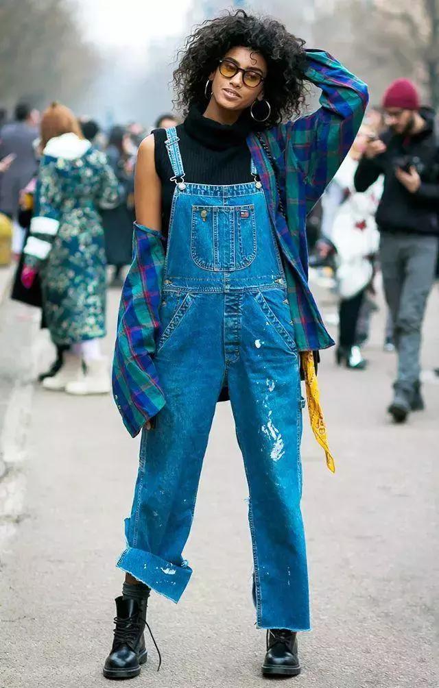 而在街拍中,我們也經常看到一些十分有個性而又大膽的背帶褲穿搭。