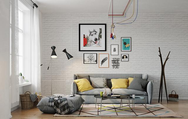 沙發上也可以放幾個簡約又明亮的抱枕,在大面積的純色系沙發承托下顯得格外的耀眼,活躍的色彩給平靜的家添加活力,牆面上懸掛幾幅圖畫或大或小,使白色的牆面不顯單調,也為小清新的生活添加些小小的歡樂。