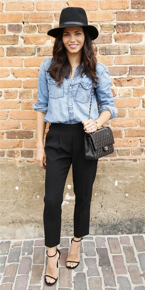 黑色褲子搭配什麼上衣LOOK5:牛仔上衣