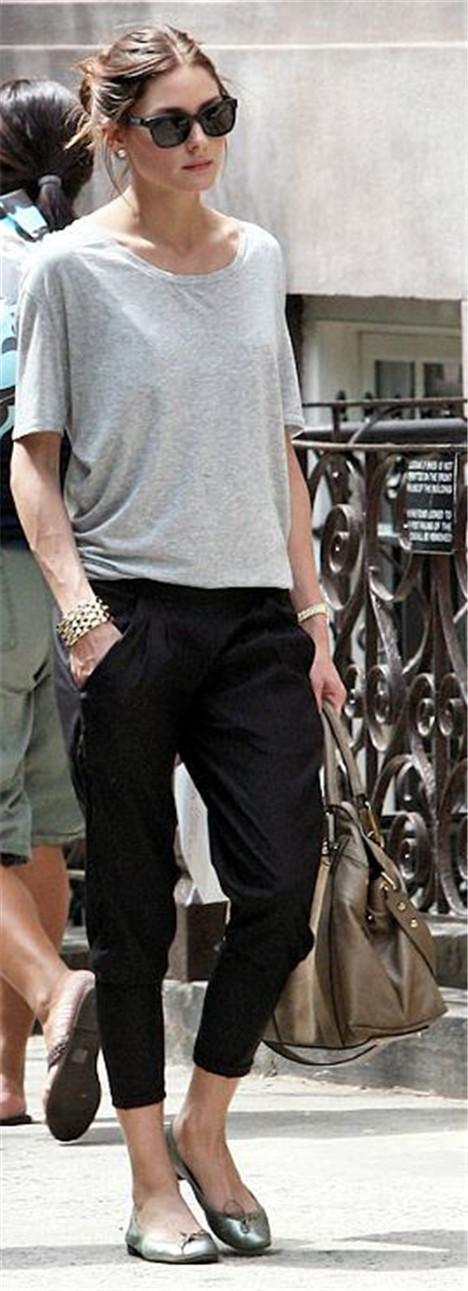 黑色褲子搭配什麼上衣LOOK6:灰色上衣