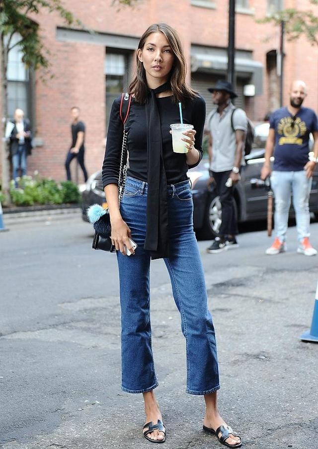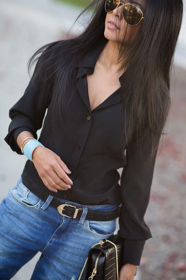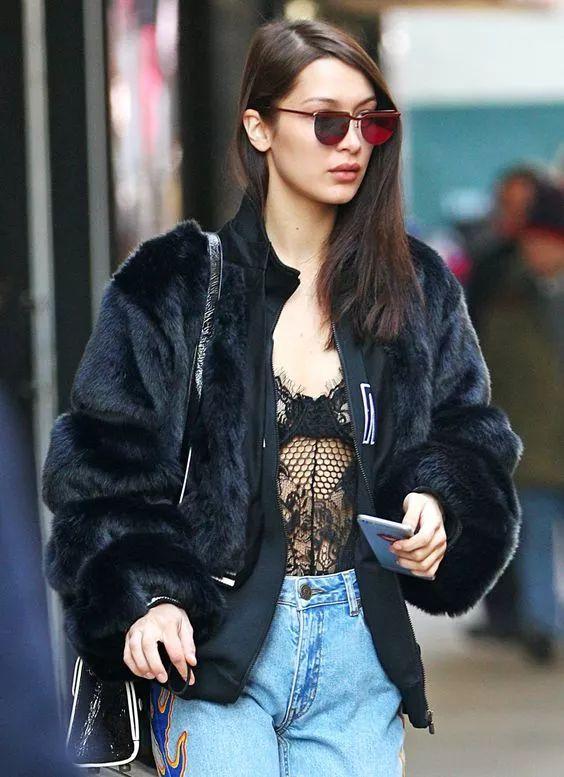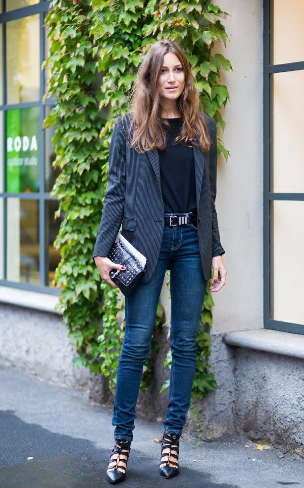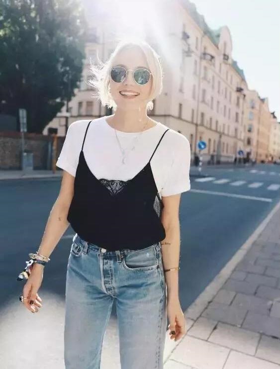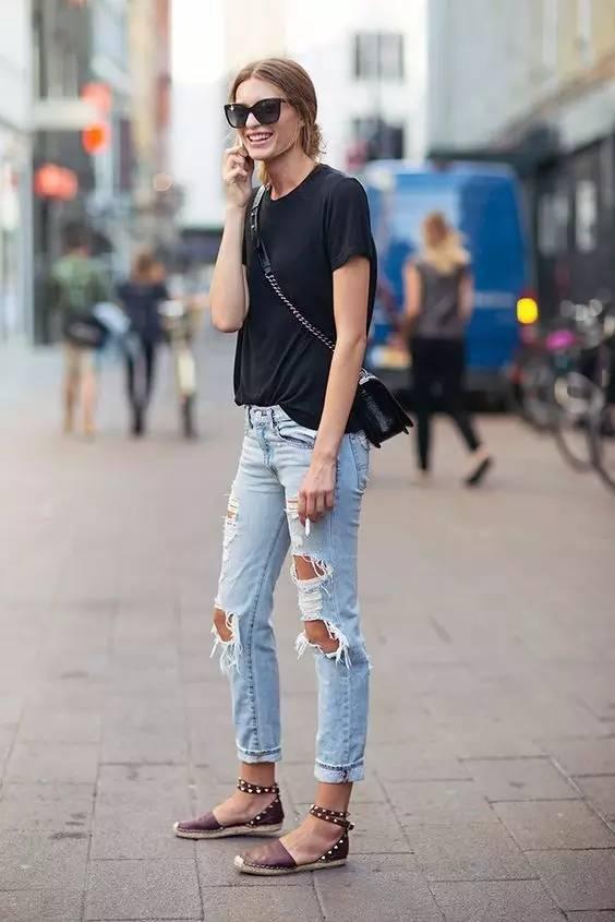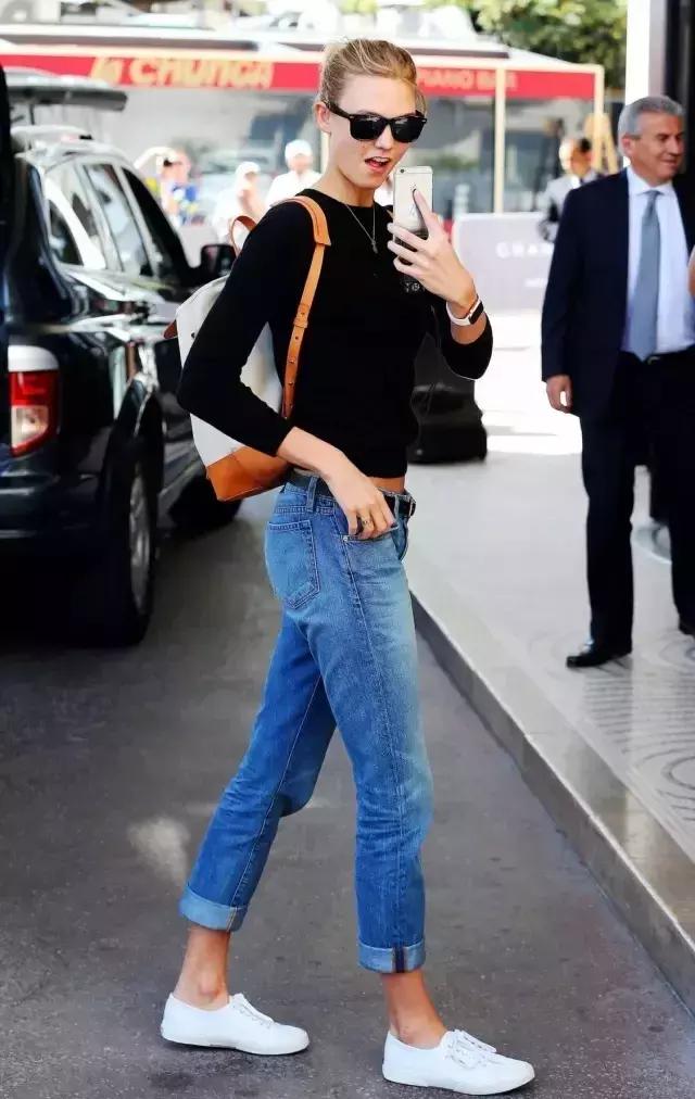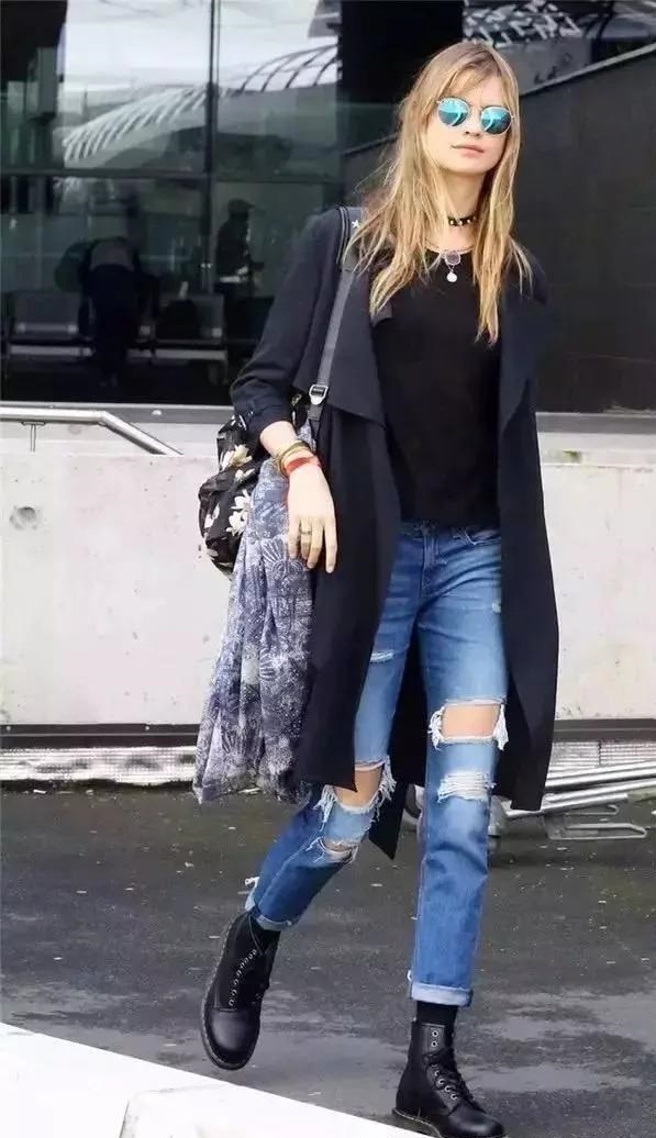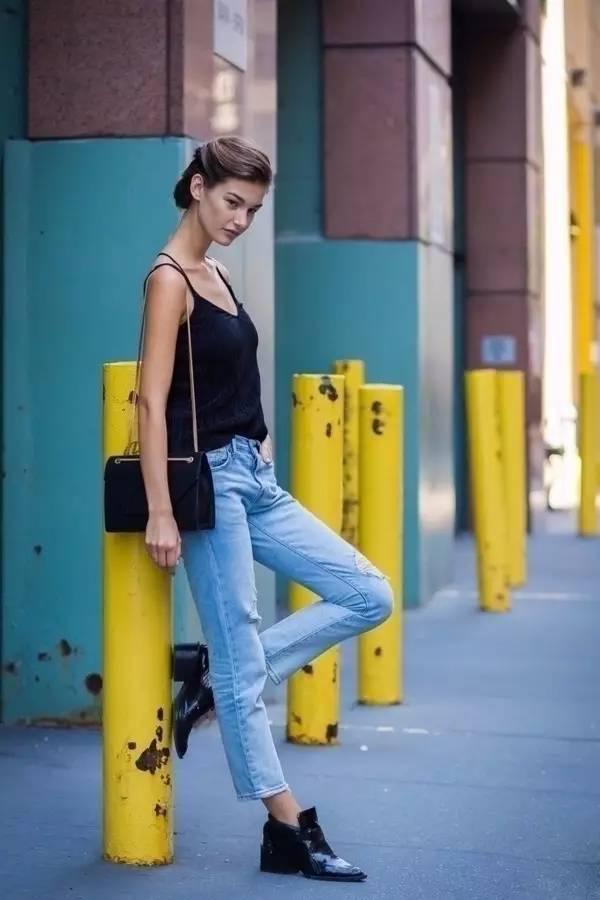 黑色上衣搭配牛仔褲,也是非常顯瘦的,而且酷酷的感覺,很吸引人的目光。